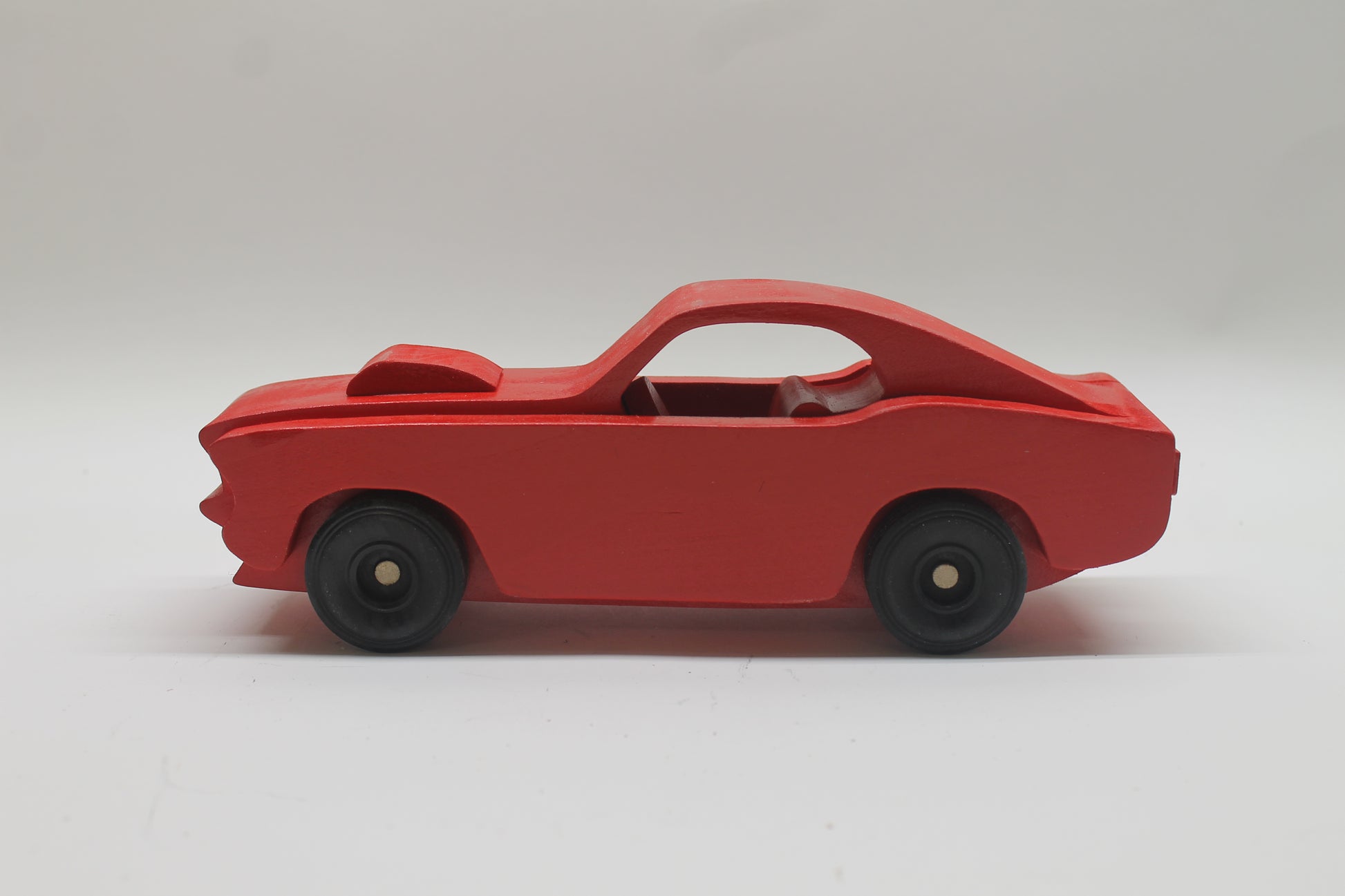 Handcrafted 1969 Mustang Fastback Model in Solid Hardwood. Choice of Red or Yellow