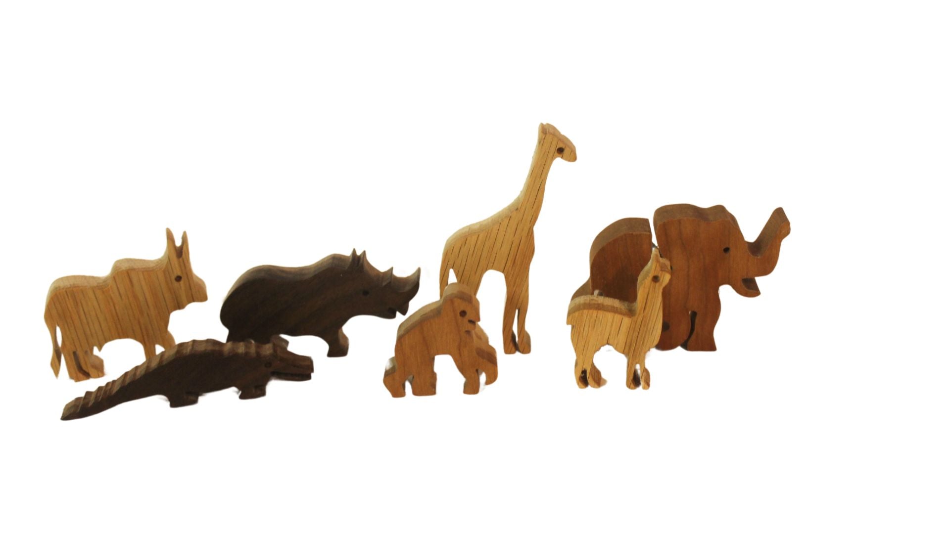 • The animals are cut from various hardwoods such as oak, walnut, maple, cherry, and mahogany