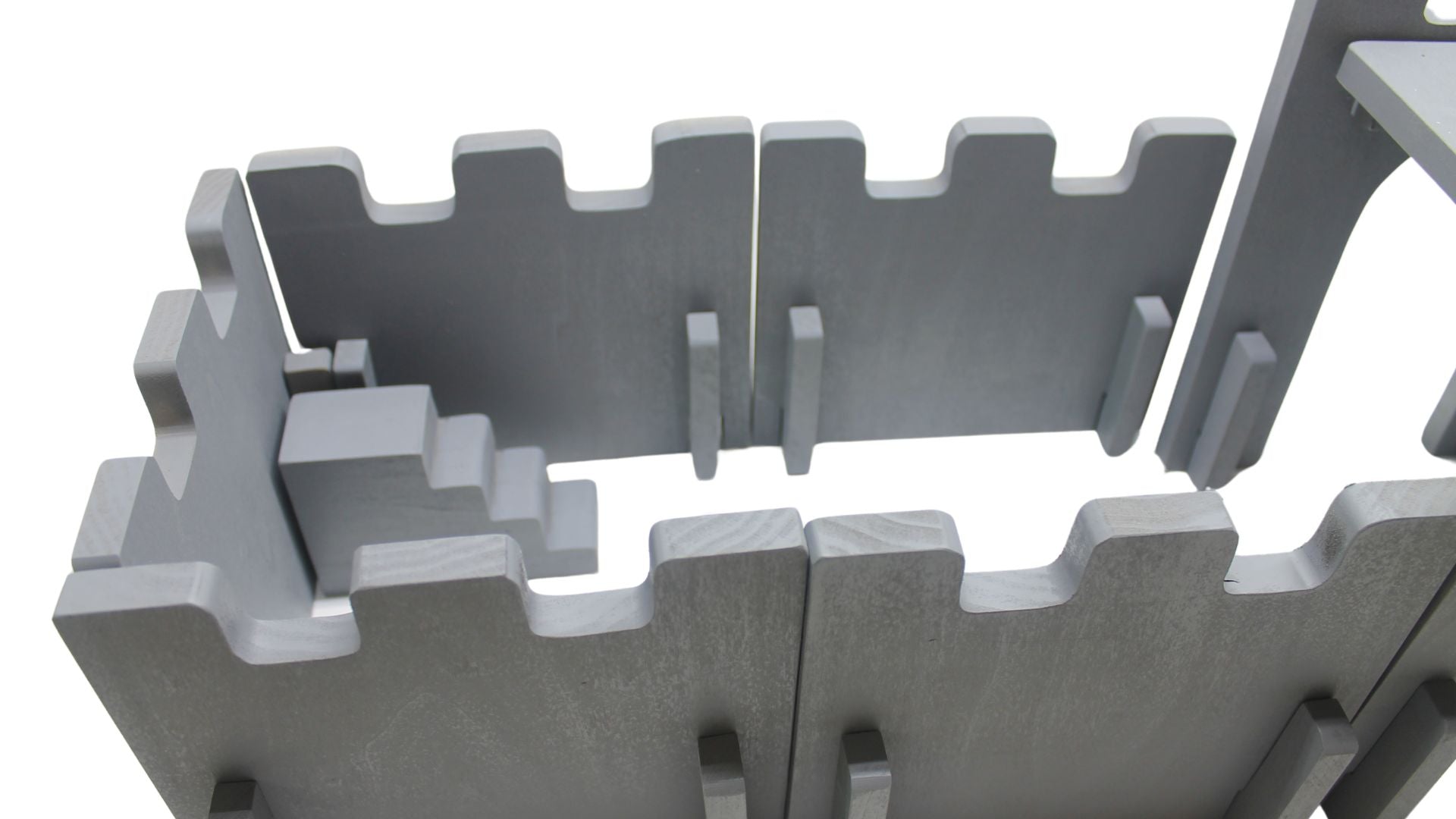 • The castle walls are made from solid poplar and have been spray-painted gray